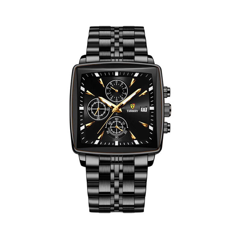 Timekey Square Multifunctional Quartz Watch With Stainless Steel Strap Chronograph - Business And Sport Men's Wristwatch